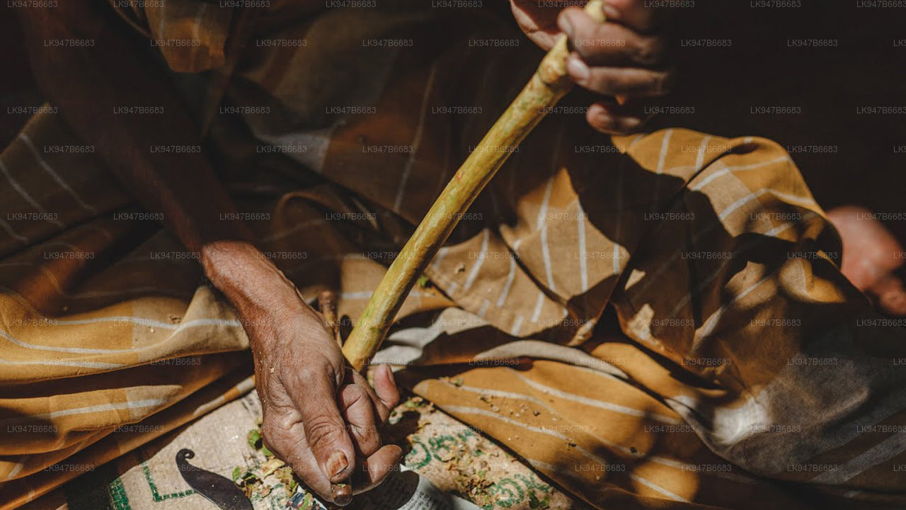 Cinnamon peeling is a specialized task. The process begins with peelers cutting the bulk of tender shoots from the cinnamon plantations.In a cinnamon plant, you get multiple stems so cutting the stems is something you need to do carefully as any damage caused to the plant would affect the yield thereafter. Generally you cut only the tallest two or three shoots from each shrub using a special knife. The rest of the stems are left in the shrub for growing, as one shrub has the potential to produce the yield twice a year. Peelers then stack the bulk of these long yellow stems in a shed to prepare for peeling.