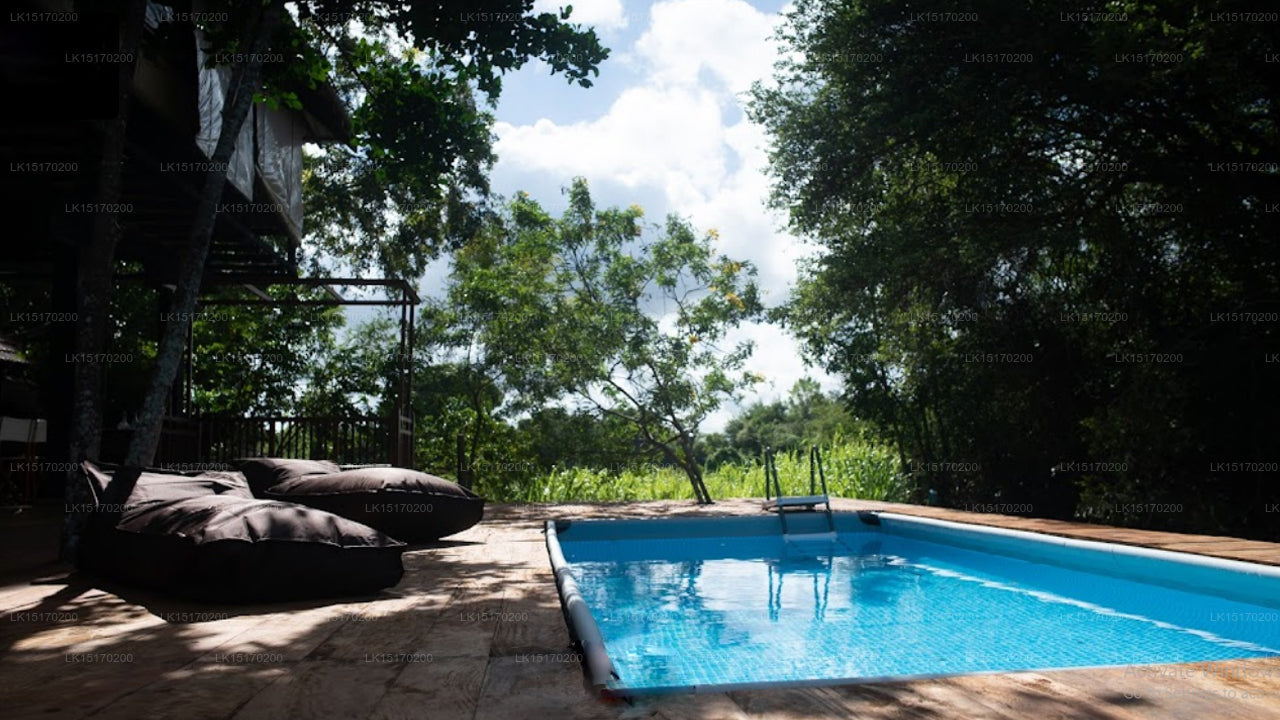 Aanawila is a simple, government-run wildlife circuit bungalow that sleeps up to ten guests. It offers shared dormitory-style or group rooms with basic beds and mosquito nets, and shared bathroom facilities. The bungalow provides a comfortable yet back-to-basics jungle experience.
