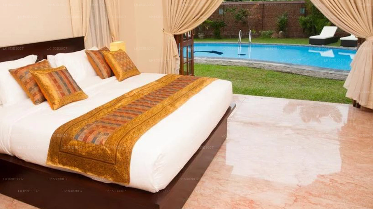 Alankara Villa offers spacious and elegantly designed rooms, each equipped with air conditioning, flat-screen TVs, free Wi-Fi, and en-suite bathrooms. Some rooms feature private balconies with views of the lush garden or pool area, providing guests with a cozy space to unwind. The villa’s thoughtful design and luxury furnishings create a refined yet homely ambiance.