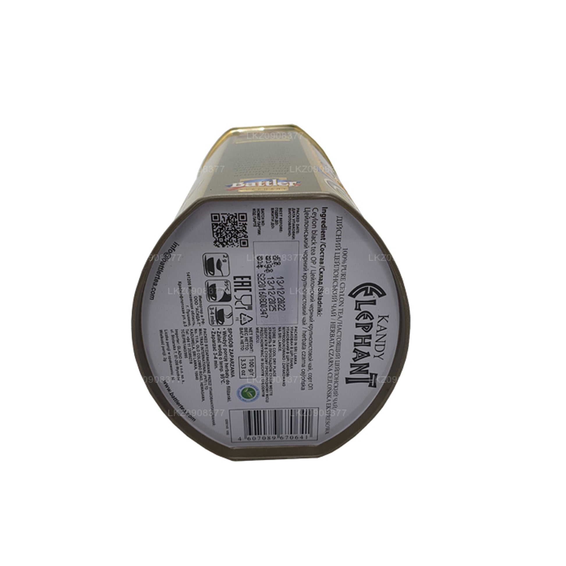 Battler Kandy Elephant OP is a whole leaf black tea from the central hills of Ceylon, designed to enchant your palate. This 100g caddy features low-grown, black rolled long whole leaves that produce a refreshing, pleasant aroma and a full-bodied, strong brew. The tea infuses into an orange color with a sweet, refreshing aroma, providing a robust and invigorating experience. Perfect for those who appreciate a deep and flavorful cup of tea from one of Ceylon's most celebrated tea-growing regions.
