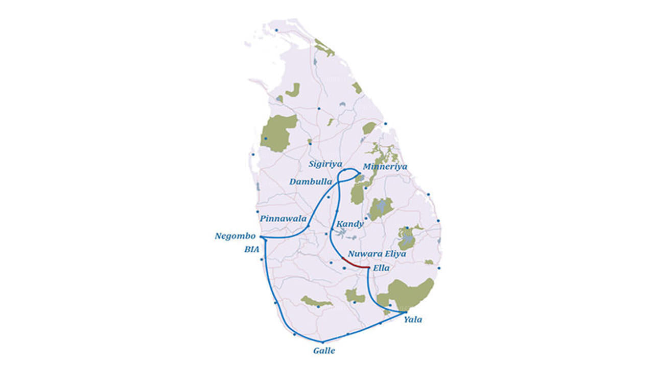 Colors of Sri Lanka is a trip for those who appreciate the true beauty of diverse landscapes and the rich and fascinating culture and history of Sri Lanka. Visit the cool, lush green hill country. Embark on fascinating wildlife safaris and walk with the Aborigines (The ancient ones). Have a truly Sri Lankan experience with a cup of Ceylon Tea or fresh King Coconuts on the calm southern coast. This is undoubtedly a tour of immense charm.
