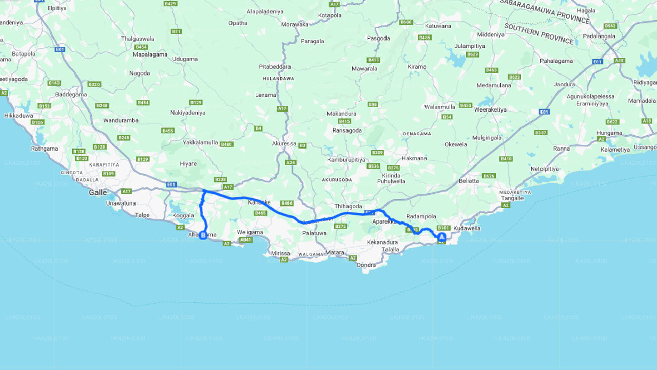 - Pick-up within the city limits of Dikwella and drop-off within the city limits of Ahangama.