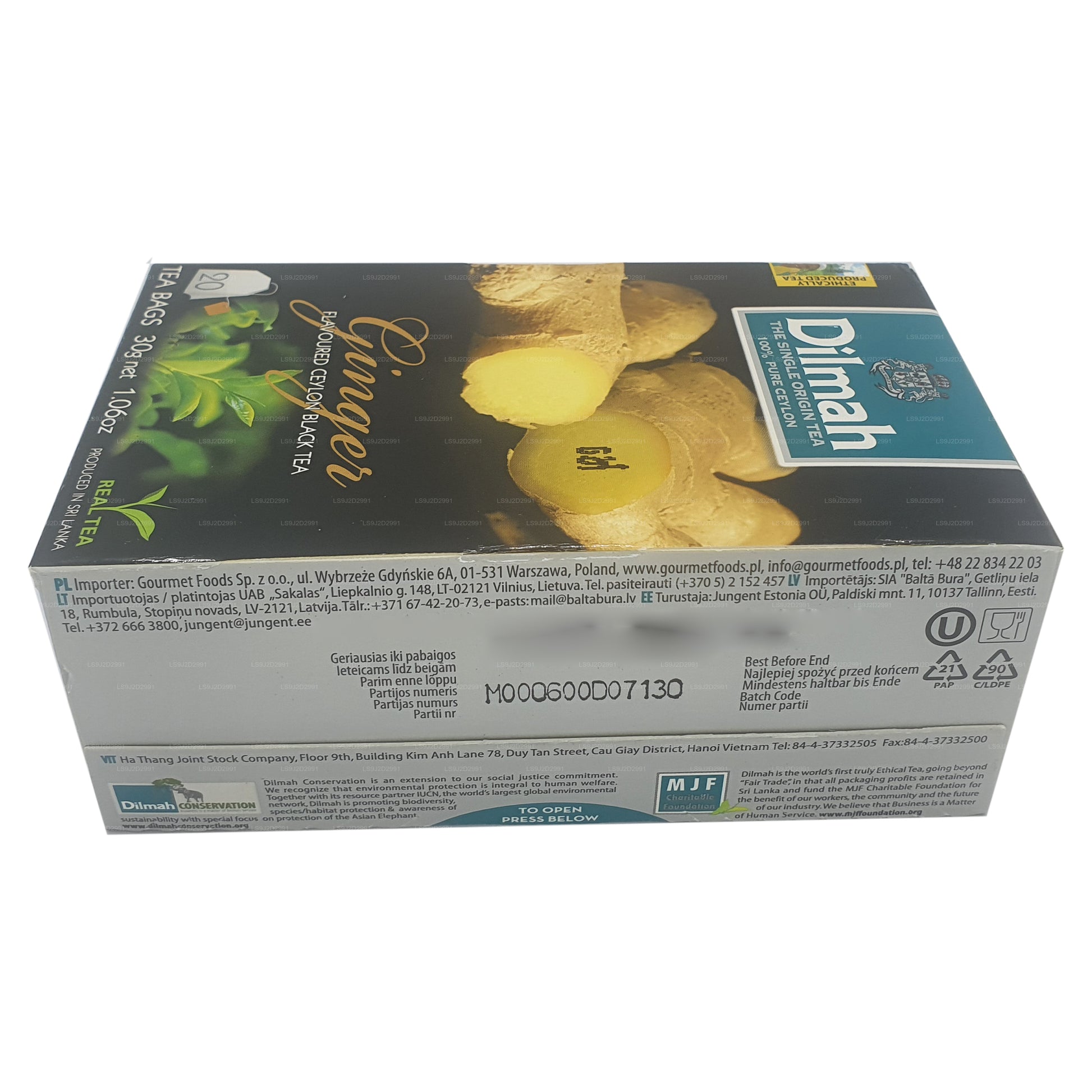 Dilmah Ginger Flavored Black Tea (30g) 20 Tea Bags