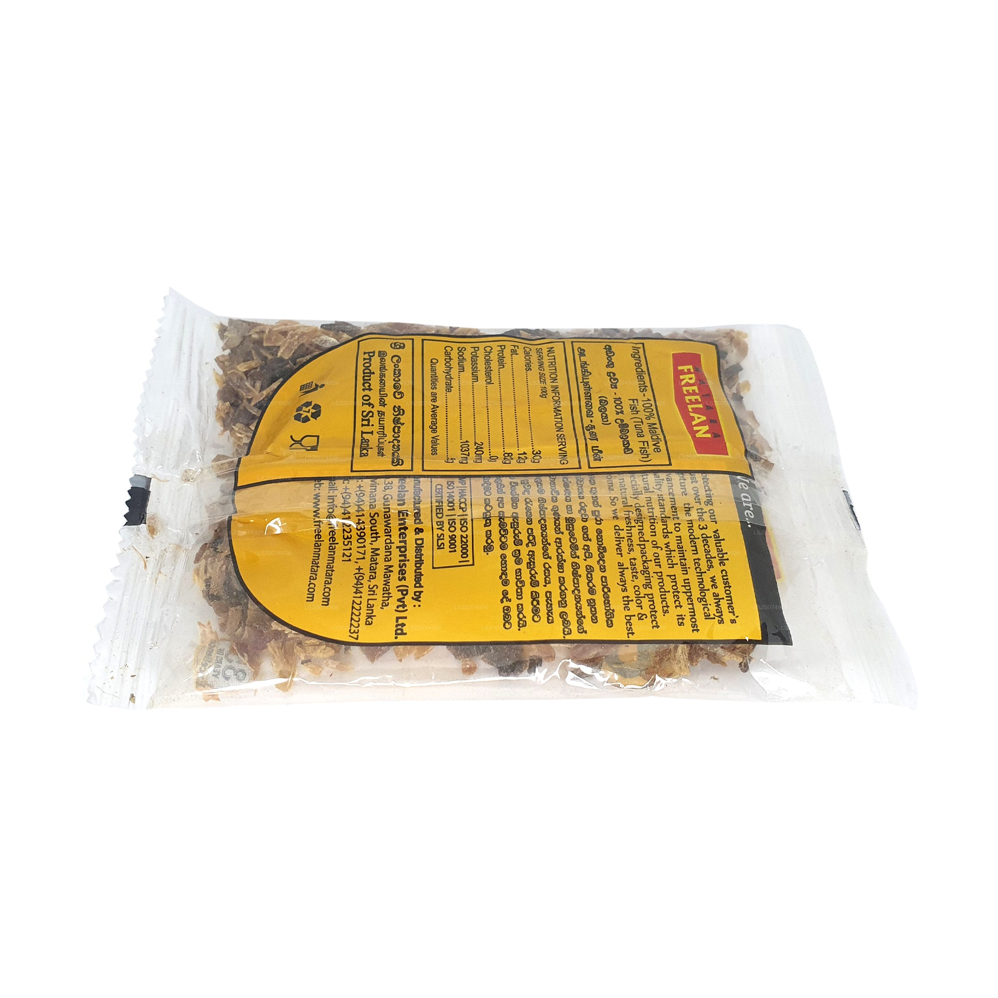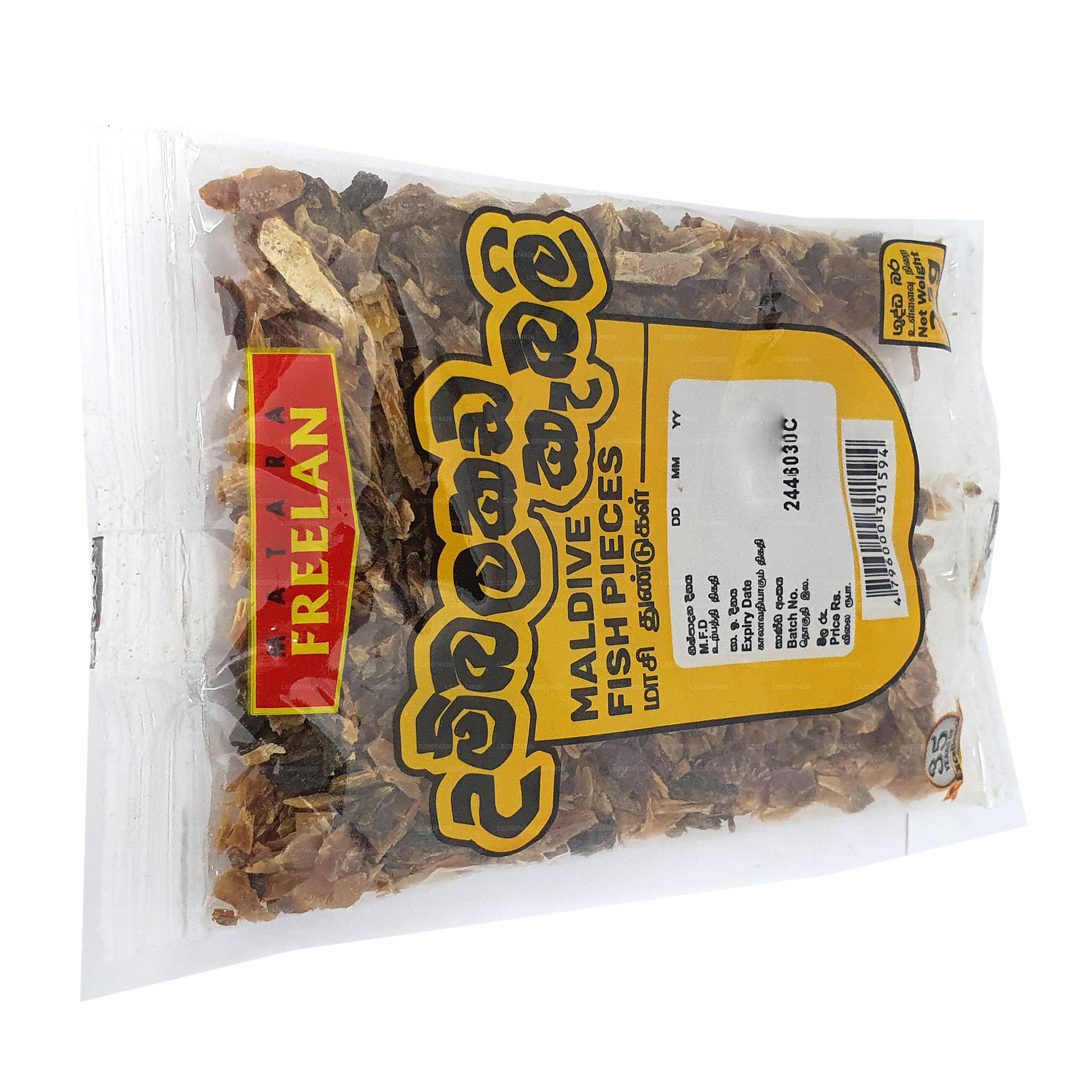 Freelan Maldive Fish Pieces offer a savory and authentic taste of the Maldives. With a 25g pack, these fish pieces are a staple ingredient in Maldivian cuisine. Derived from sun-dried tuna, they are rich in umami flavor, adding depth to various dishes. The small, flavorful pieces can be used to enhance curries, sambols, and other traditional preparations. Freelan Maldive Fish Pieces are a convenient way to bring the distinctive taste of the Maldives to your culinary creations, offering a genuine and versatile ingredient that reflects the essence of this unique island nation's cuisine.