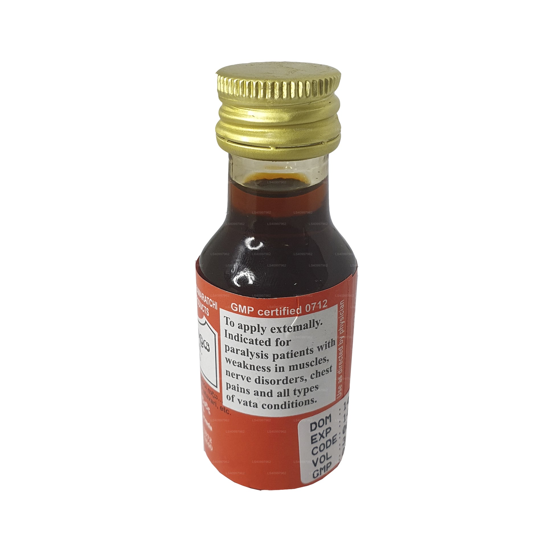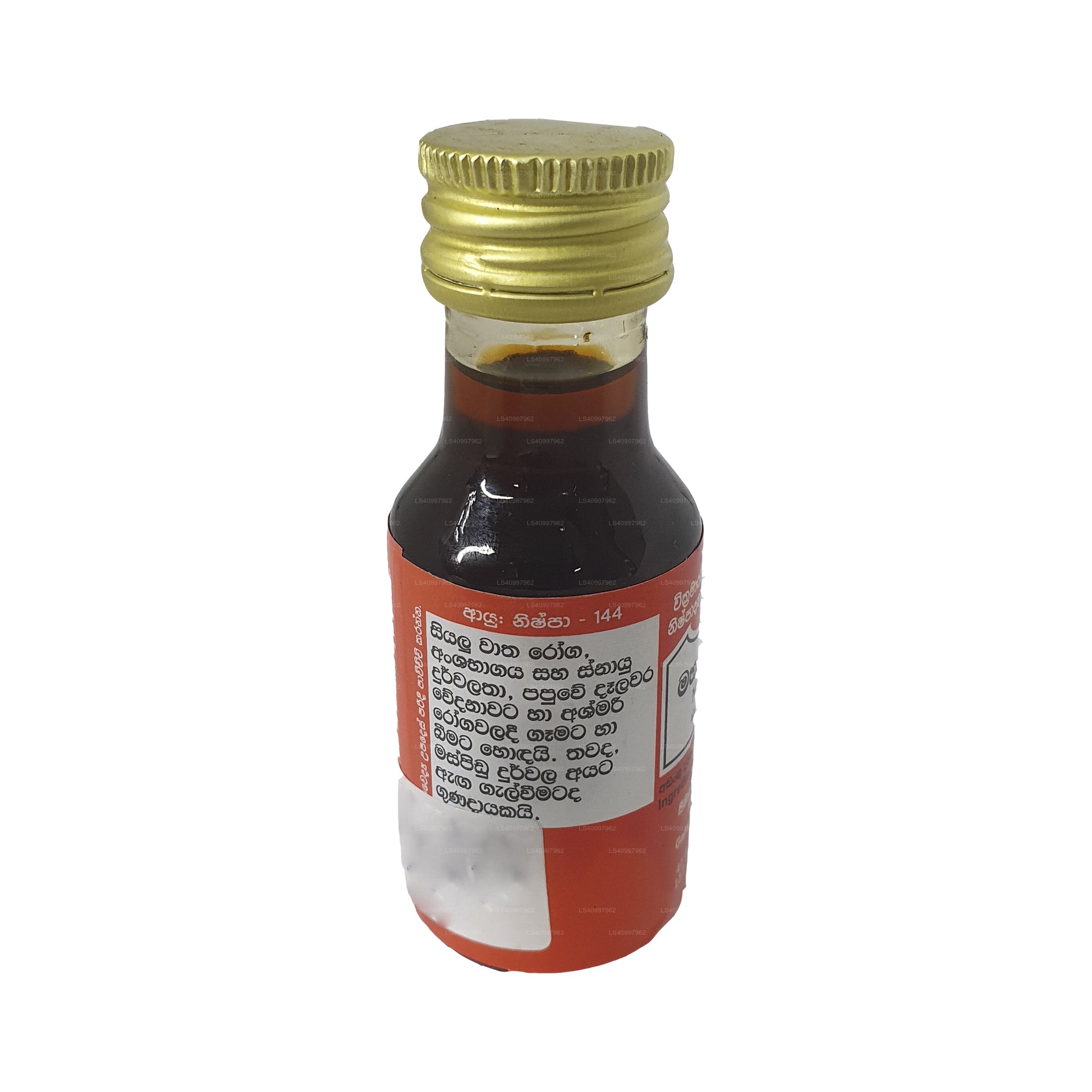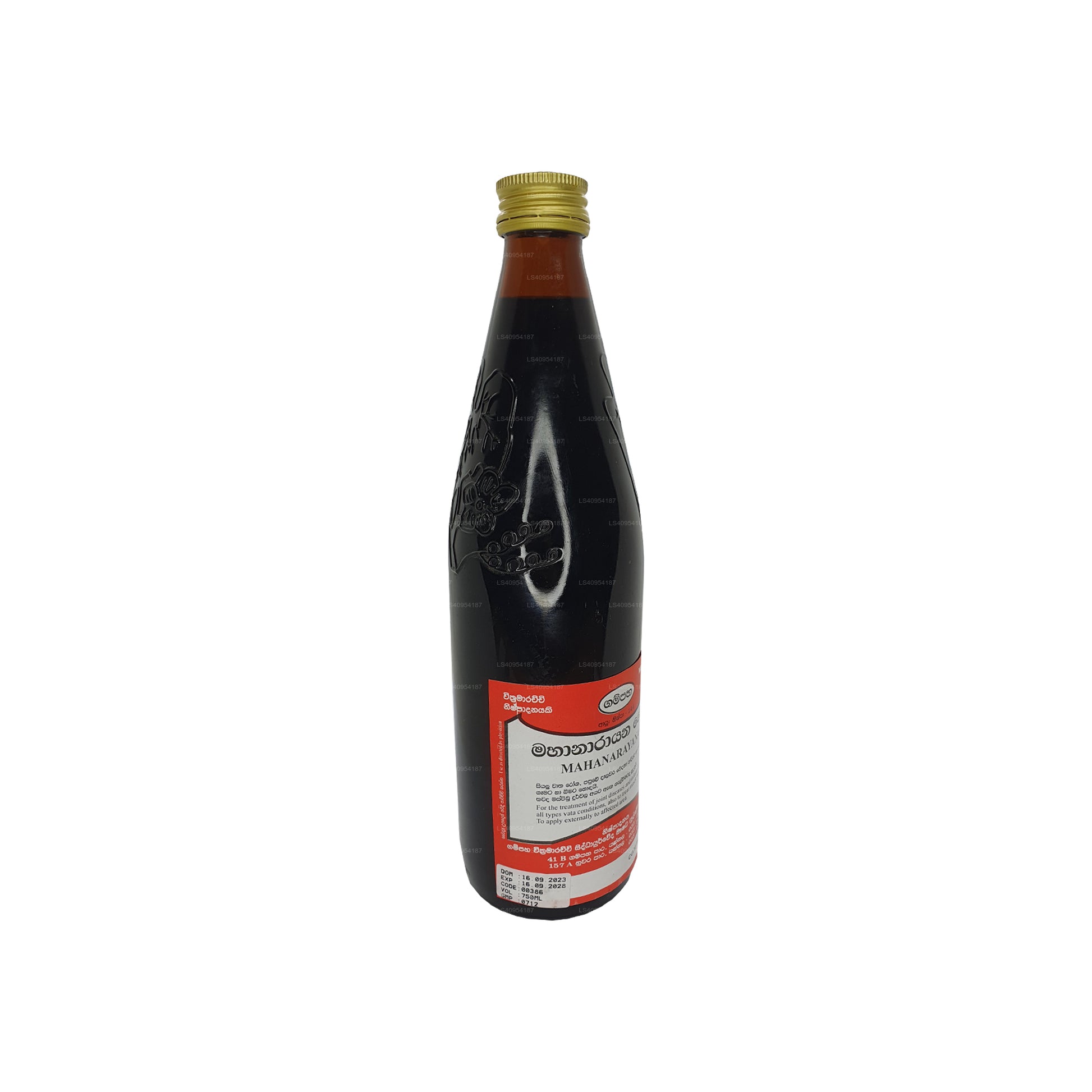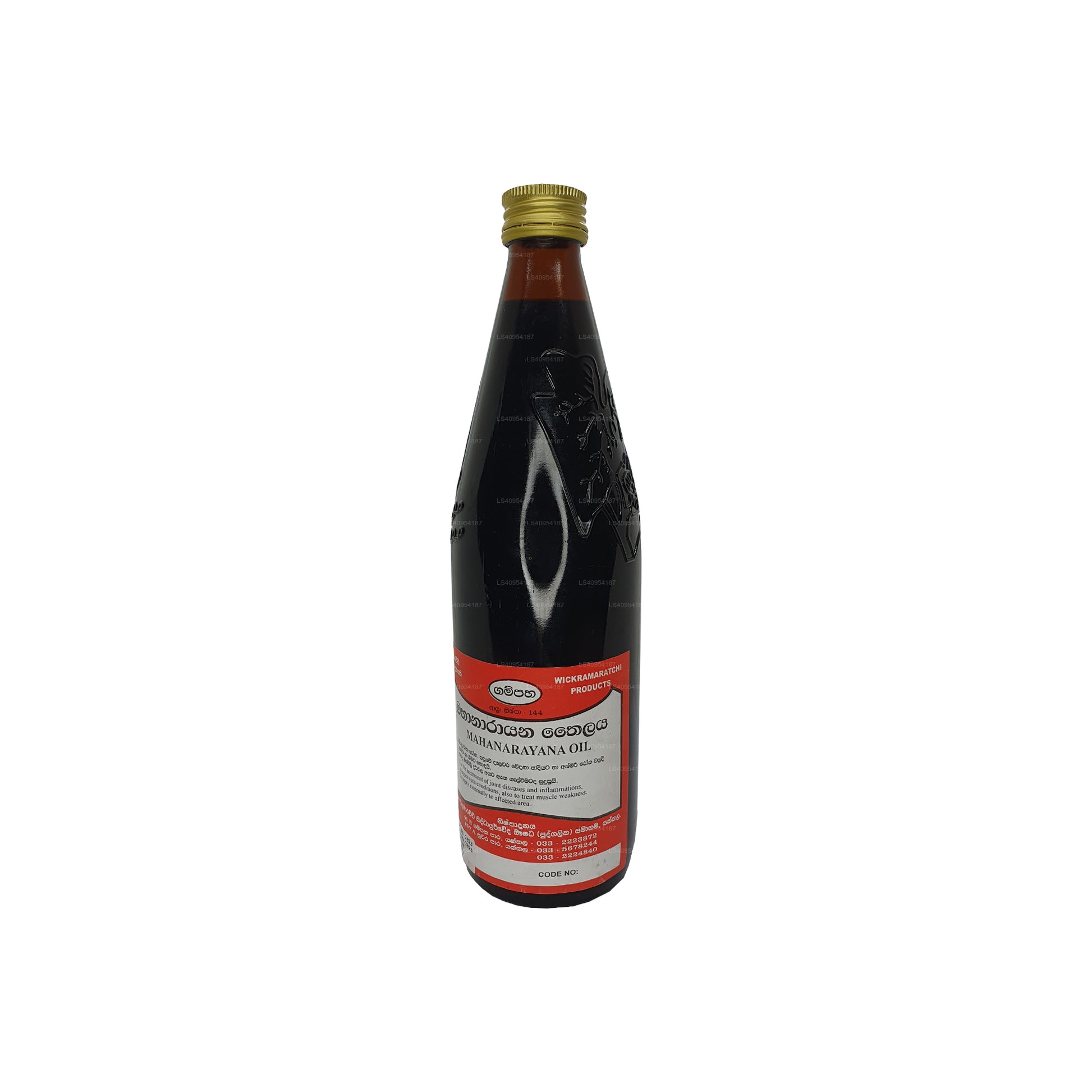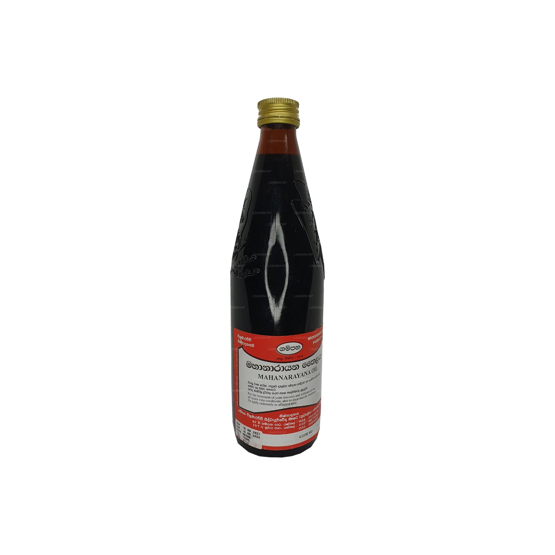 Gampaha Wickramarachchi Maha Narayana Oil is an Ayurvedic herbal oil known for its potential therapeutic benefits. It is formulated with a blend of natural ingredients that might promote muscle and joint support, relaxation, stress relief, increased energy, and improved circulation. The oil is used through gentle massage to potentially alleviate discomfort and enhance overall well-being. As with any new product, it is essential to exercise caution and seek professional advice if needed.