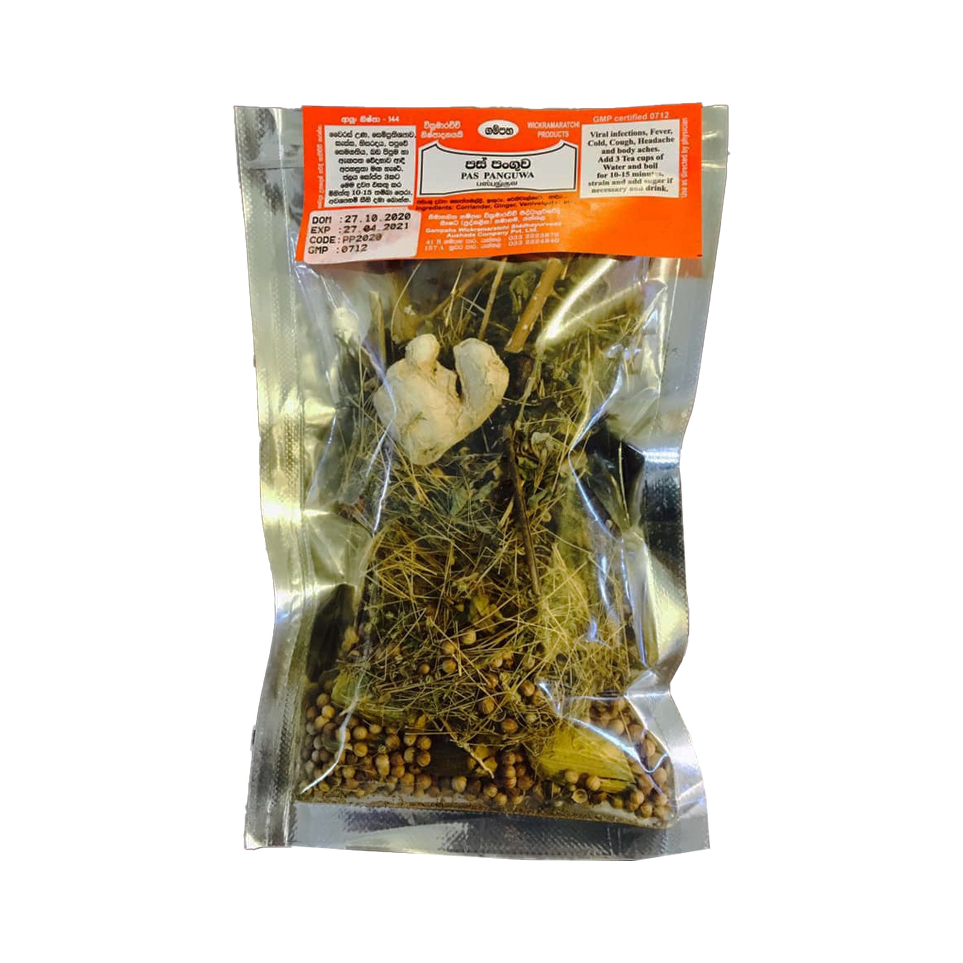 (SKU: LS40007B9A) Gampaha Wickramarachchi Paspanguwa is a traditional herb originating from Sri Lanka that combines various herbs and spices such as ginger, coriander and vetiver. This elixir is known for its potential health benefits, including digestive aids, anti-inflammatory properties, and antioxidants. It is formulated as a medicinal tea and is deeply rooted in Sri Lankan culture and traditional medicine.
