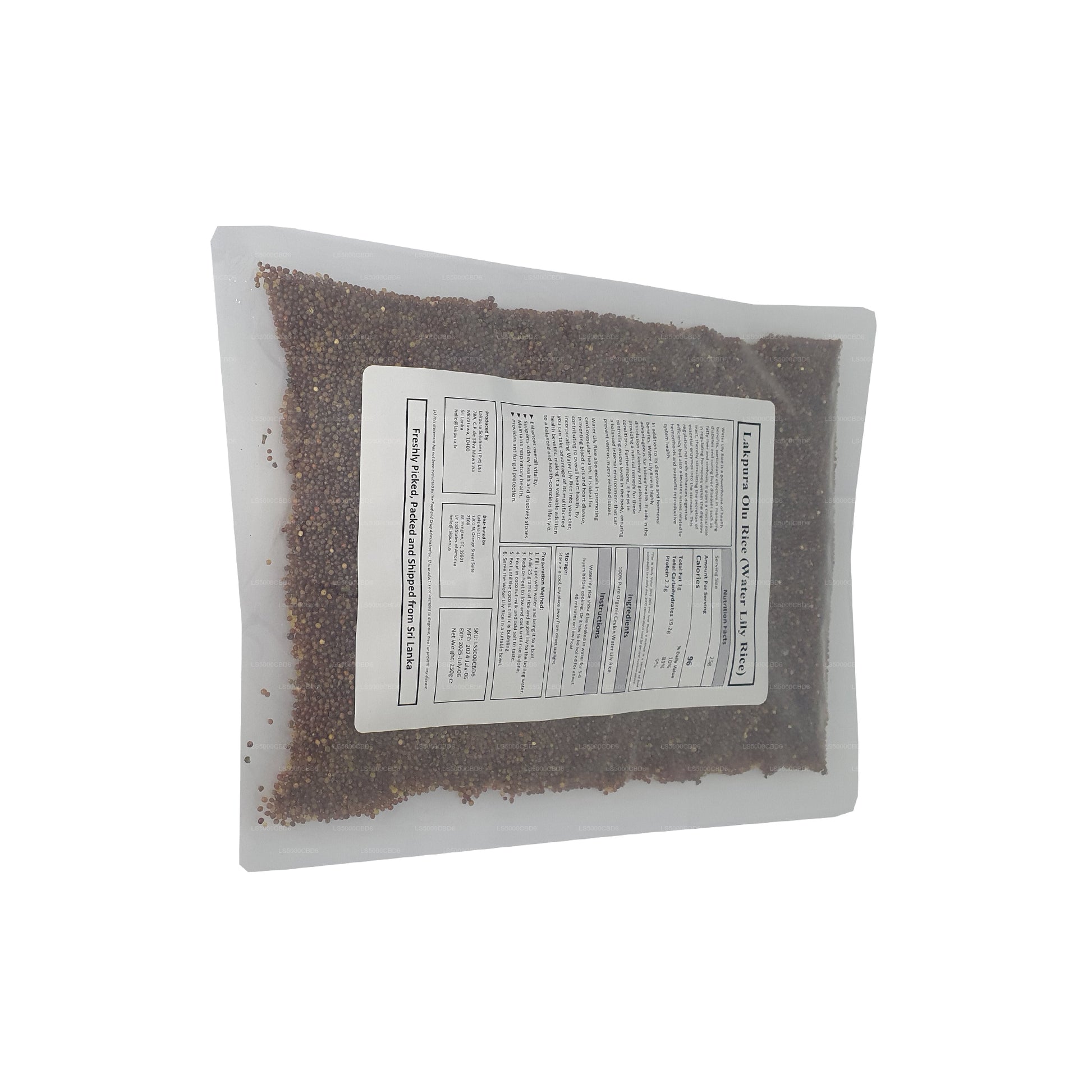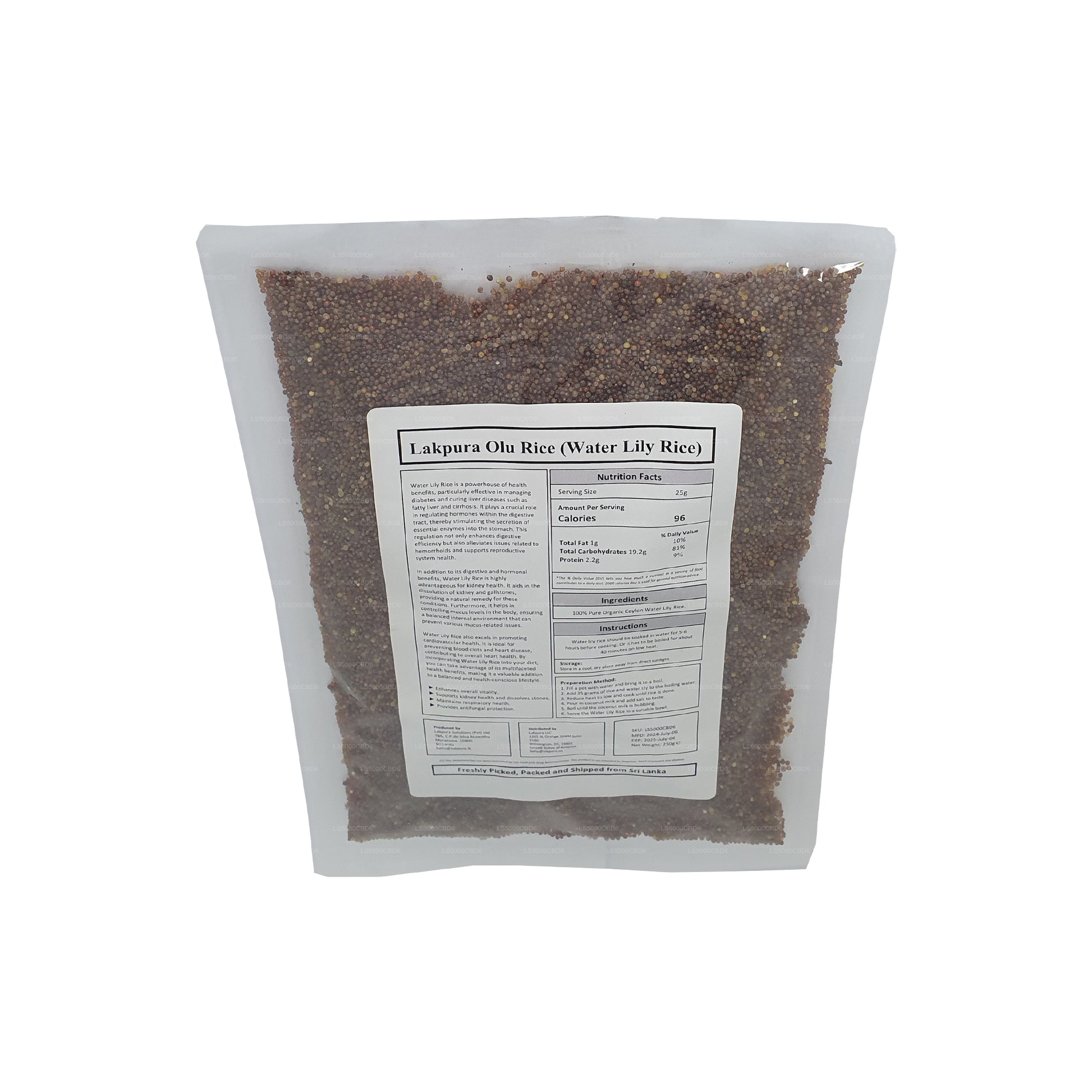 Lakpura Water Lily Rice or more commonly known as Olu Rice is directly harvested from the fruits of the mature water lilies (Nymphaea pubescens) or Olu Mal as Sri Lankans refer to it. It is mainly consumed as a substitute for rice while people enjoy it as a porridge mix as well due to its medicinal and nutritional qualities. This particular Olu Rice is ideal for those who have to restrict their consumption of carbohydrates. Made of 100% water lily seeds, this product is perfect for directing your lifestyle to a healthier version.