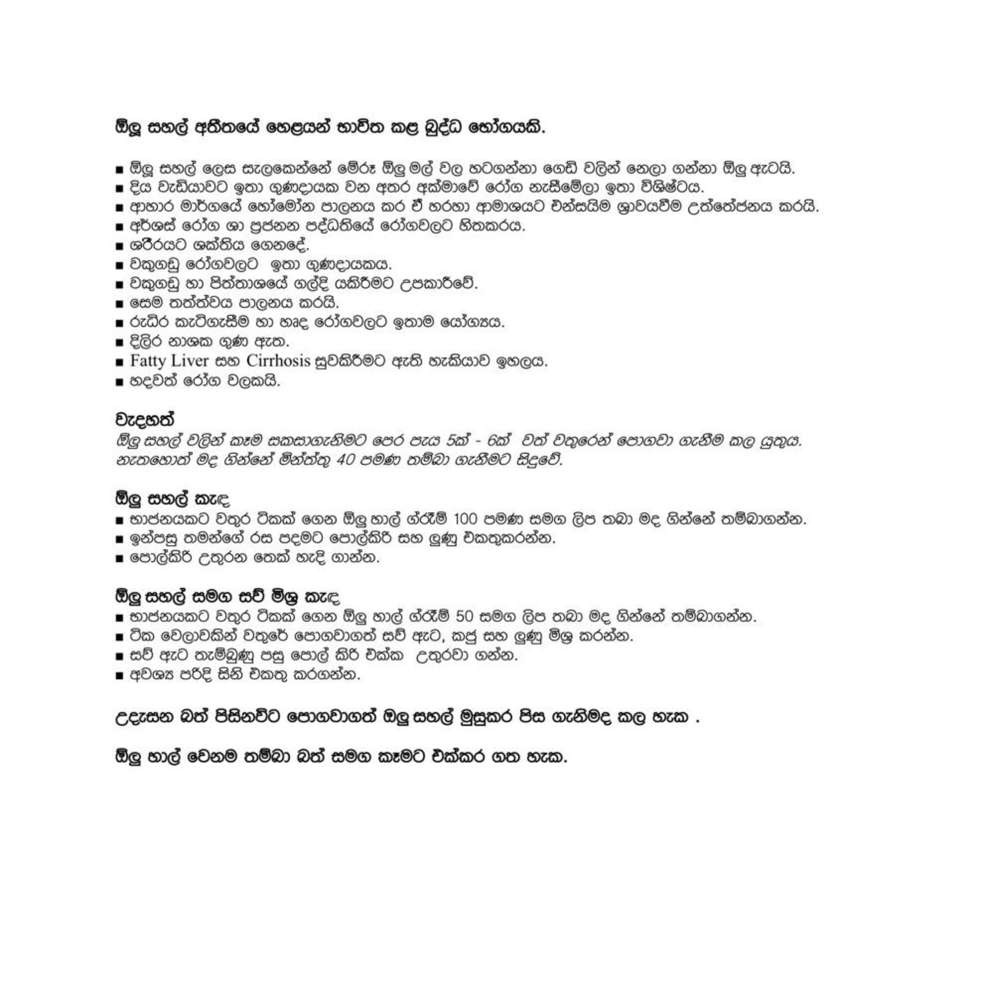 There are many potential health benefits of Lakpura Water Lily rice and the main one being the control of diabetes. It may also be of help in curing various liver diseases. It can also be a friendly diet towards your digestive system for proper hormonal regulation. Other potential health benefits include being beneficial for some kidney related diseases and haemorrhoids of the reproductive system. Ideally you should soak it in water for about 4 - 6 hours before cooking it as a rice dish or porridge mixed with coconut milk.