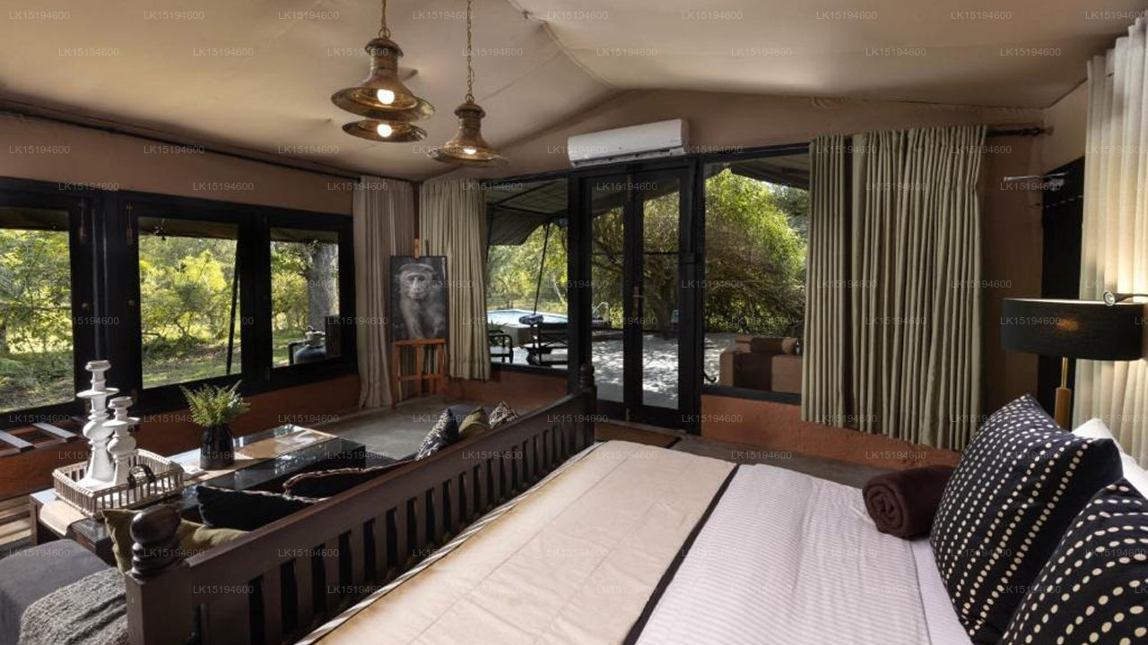 Situated adjacent to Yala National Park in southeastern Sri Lanka, Leopard Trails is set within dry forest and scrubland, offering direct access to wildlife-rich terrain and frequent animal sightings.