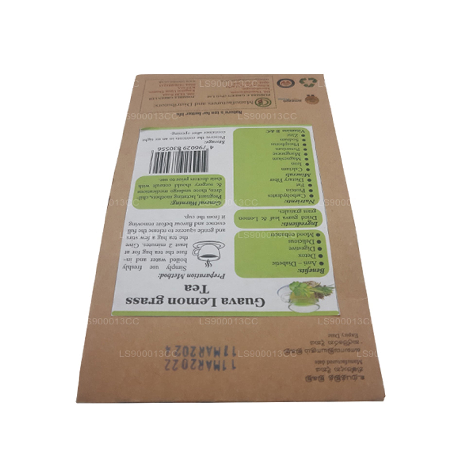 Ingredients: Dried guava leaf & Lemon grass granules.