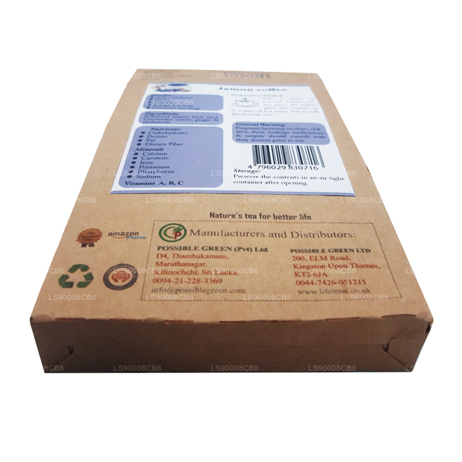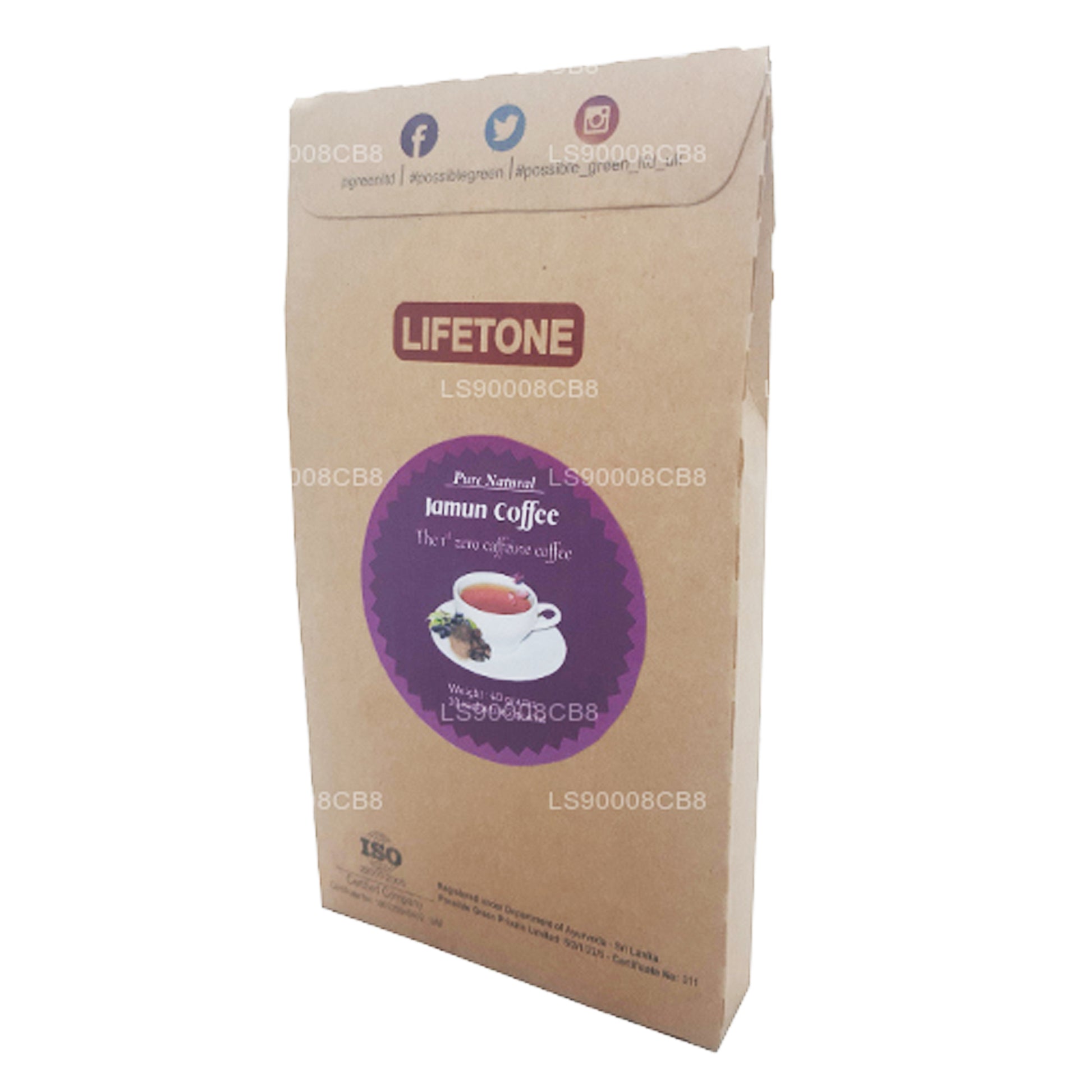 (SKU: LS90008CB8) Jamun seed kernel is known to have amazing health benefits. It is excellent for sugar control, cholesterol management and burning of fat. Jamun Jambolan has been used to lead a healthy life for years and our Lifetone Jamun (Jambolan) coffee is produced with a perfect touch of dried ginger so that you can benefit from it immense health benefits. Ingredients: 70% Jamun Seed Kernel Powder, 10% Cardamom, 10% Coriander Seed Powder, 10 % Ginger Root Powder. Usage: Maximum 2 Sachets per day. Consume morning and night, an hour before mealtime is considered appropriat