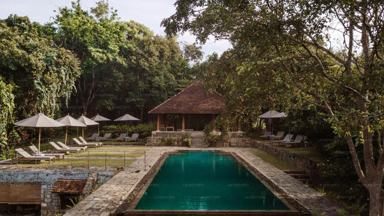 The resort features nine uniquely designed suites that blend traditional Sri Lankan architecture with modern comforts. Options include luxury villa suites with private courtyards and plunge pools, as well as forest pavilions constructed from local timber, offering semi-open walls for an immersive nature experience. All rooms are furnished with antiques and provide views of the surrounding forest or paddy fields.
