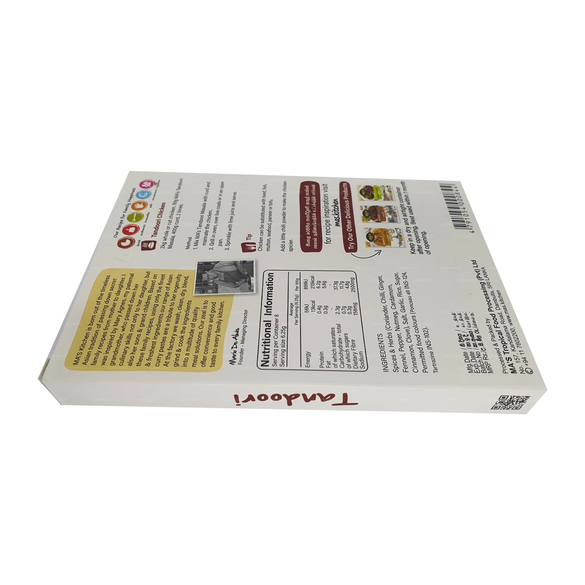 Discover the captivating flavors of India with MA's Kitchen Tandoori Masala Paste (50g). This expertly crafted paste embodies the essence of traditional Tandoori cooking, blending aromatic spices and premium ingredients. Its rich texture and vibrant red color make it a versatile addition to your culinary creations. Marinate meats, paneer, or vegetables for an authentic taste experience. Conveniently packaged in a 50g jar, MA's Kitchen ensures freshness and flavor in every serving. Elevate your cooking with the magic of Indian cuisine using MA's Kitchen Tandoori Masala Paste.