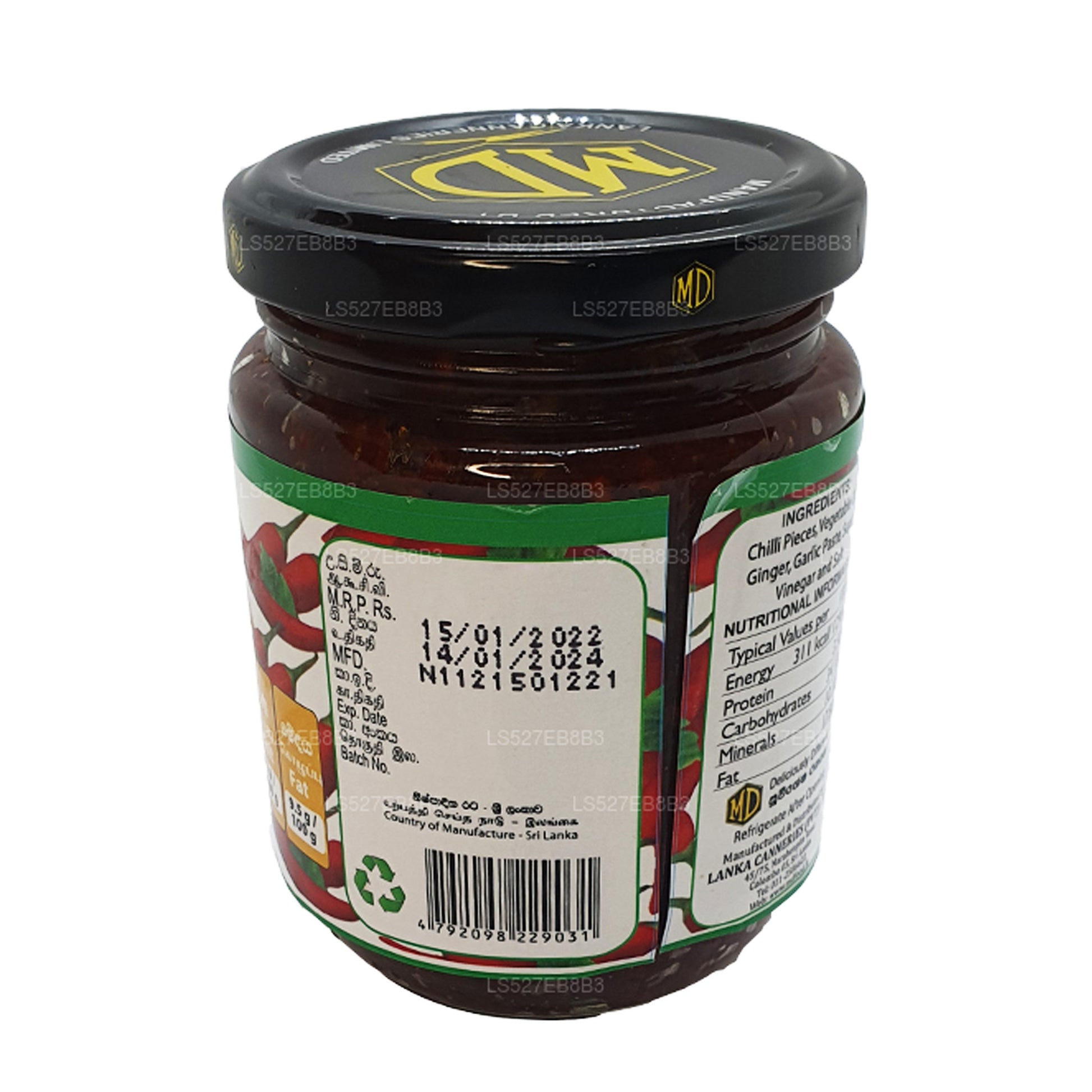 (SKU: LS527EB8B3)All MD products have been manufactured under stringent quality controls. Selection of Fruits and vegetables come under close inspection, ensuring that the MD spreads manufacturing process extract most from pure Fruits and vegetables. MD products is a firm favourite of Sri Lankans for generations and part of their daily diet. Ingredients : Chilli Pieces, Vegetable Oil, Ginger, Garlic Paste, Sugar, Vinegar and Salt