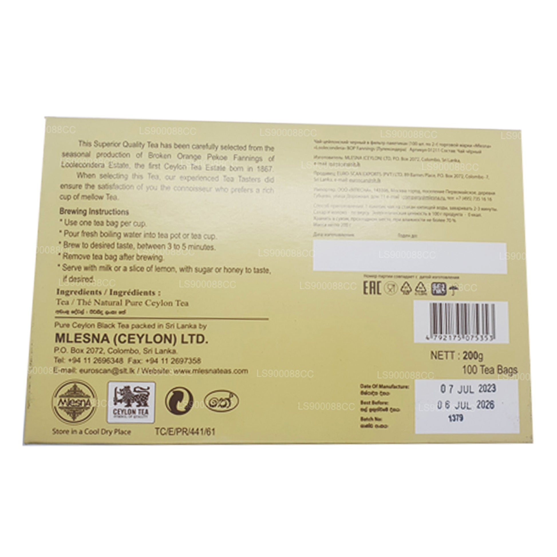 Mlesna Loolecondera BOP Fannings Strong Brew Tea is a premium Ceylon black tea made from Broken Orange Pekoe Fannings, sourced from the renowned Loolecondera Estate, the first tea estate in Sri Lanka, established in 1867. Known for its robust, brisk flavor and rich aroma, this tea offers a bold and full-bodied brew. Perfect for tea lovers who enjoy a strong cup, it can be enjoyed with or without milk and optionally sweetened with sugar, honey, or lemon. Mlesna Loolecondera BOP Fannings Strong Brew Tea embodies the true essence of Sri Lankan tea heritage.