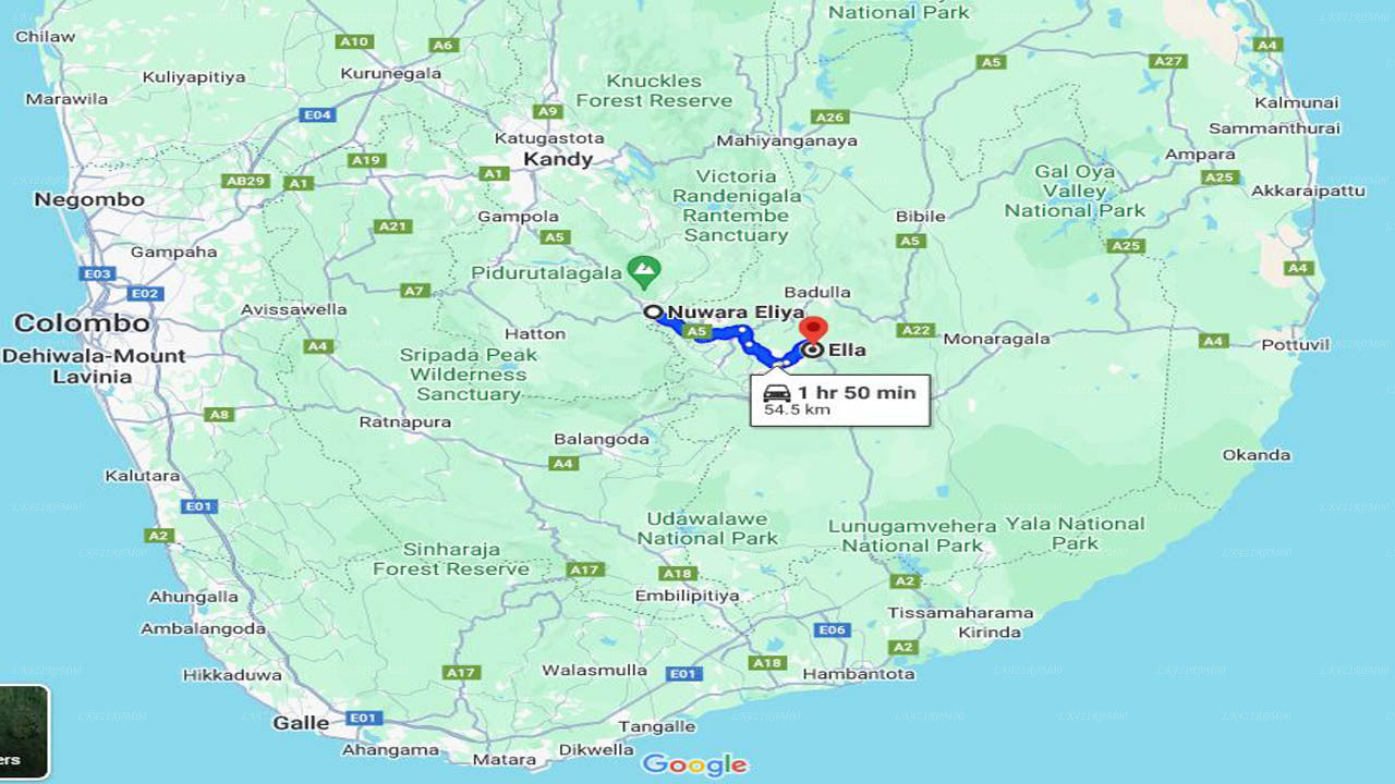 - Pick-up within the city limits of Nuwara Eliya and drop-off within the city limits of Ella.