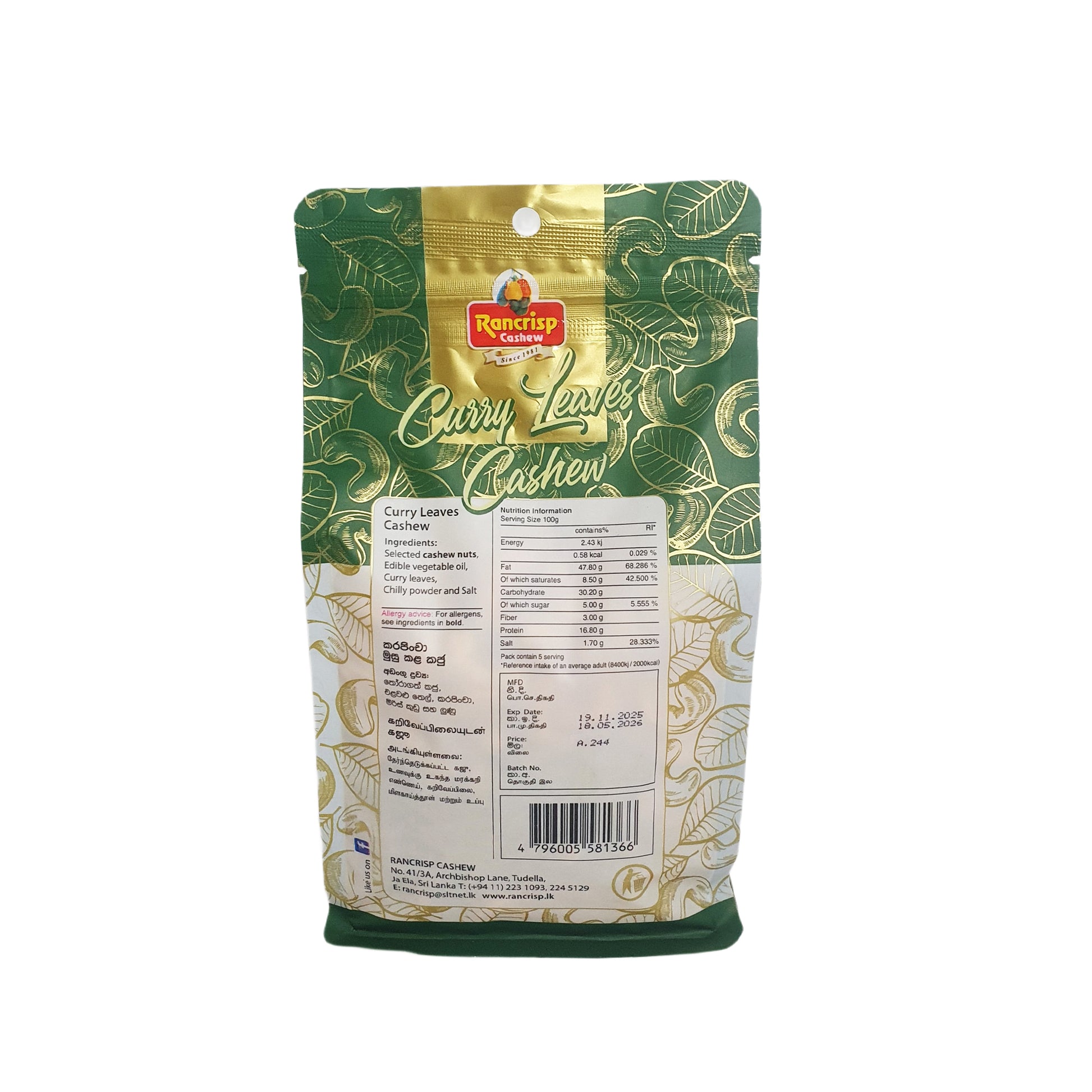 Rancrisp Curry Leaves Cashew Nuts