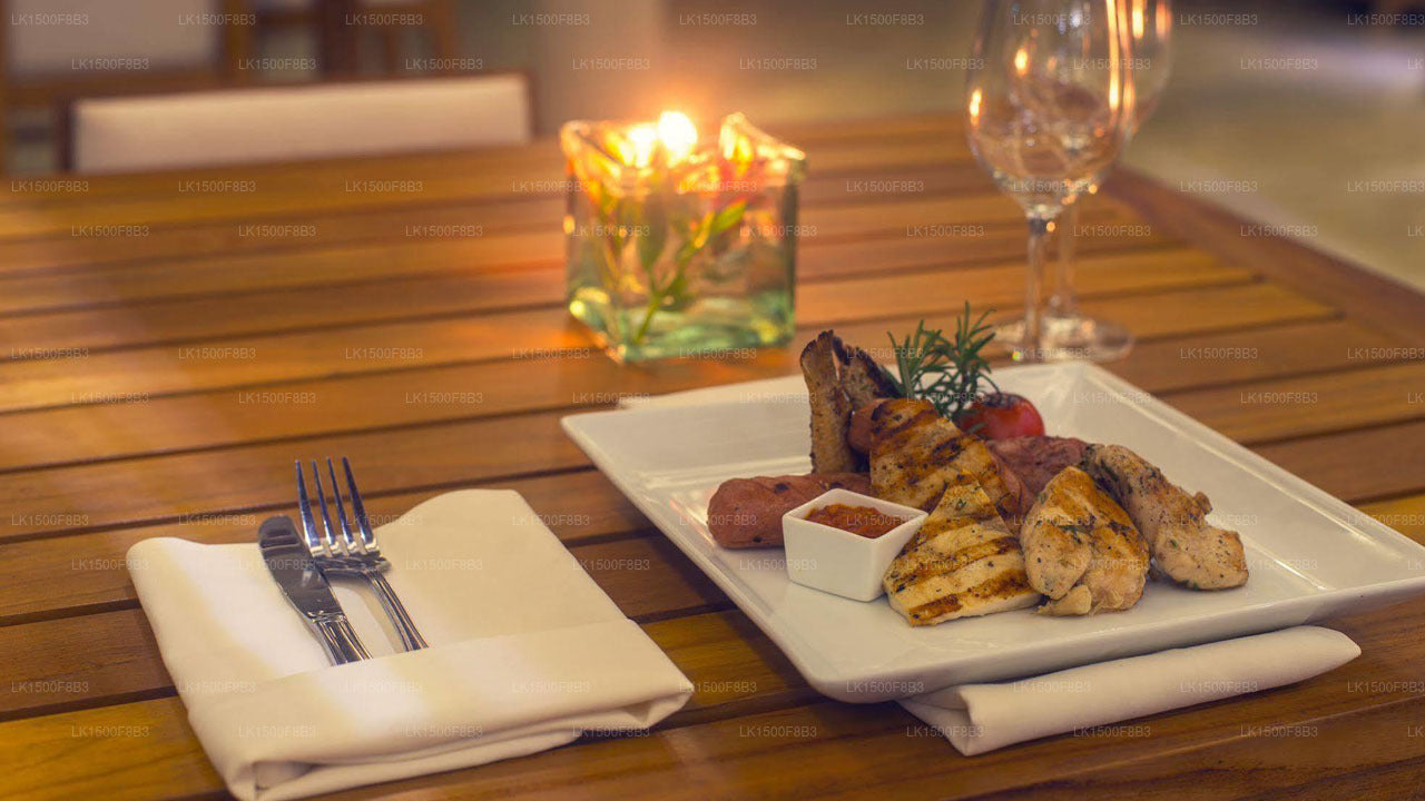 For a unique and romantic dining experience, the hotel introduces a "Ferry Dinner" which is served on a beautifully decorated ferry while gliding along the river adjacent to Ranweli Holiday Village. There is a personal butler, a chef and a ferryman on board to meet all your needs while there are three menus with choices of sea food, Sri Lankan/ Eastern or meat as the main course. All menus offer a 5 course dinner while a bottle of sparkling wine is served to complement the dinner. Tea/coffee is also served to end the meal.