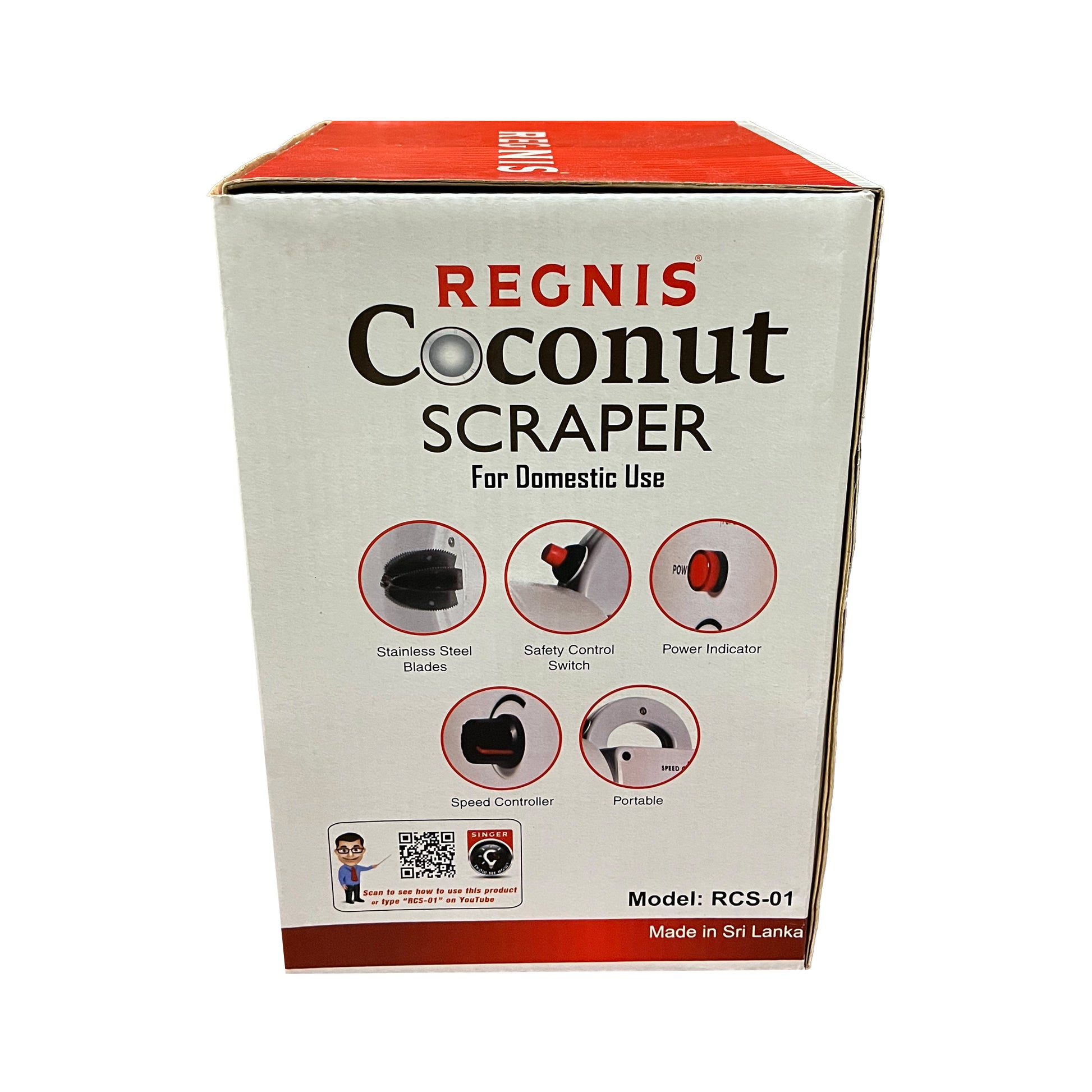 Regnis Domestic Electric Coconut Scraper (Model RCS-01) is a reliable and authentic coconut shredder, perfect for domestic use. Completely made in Sri Lanka, it offers excellent performance and convenience. With the ability to process one coconut per minute, this scraper is ideal for households looking to quickly prepare fresh coconut for cooking. The Regnis electric scraper comes equipped with a speed controller, safety control switch, and power indicator, ensuring smooth and safe operation.