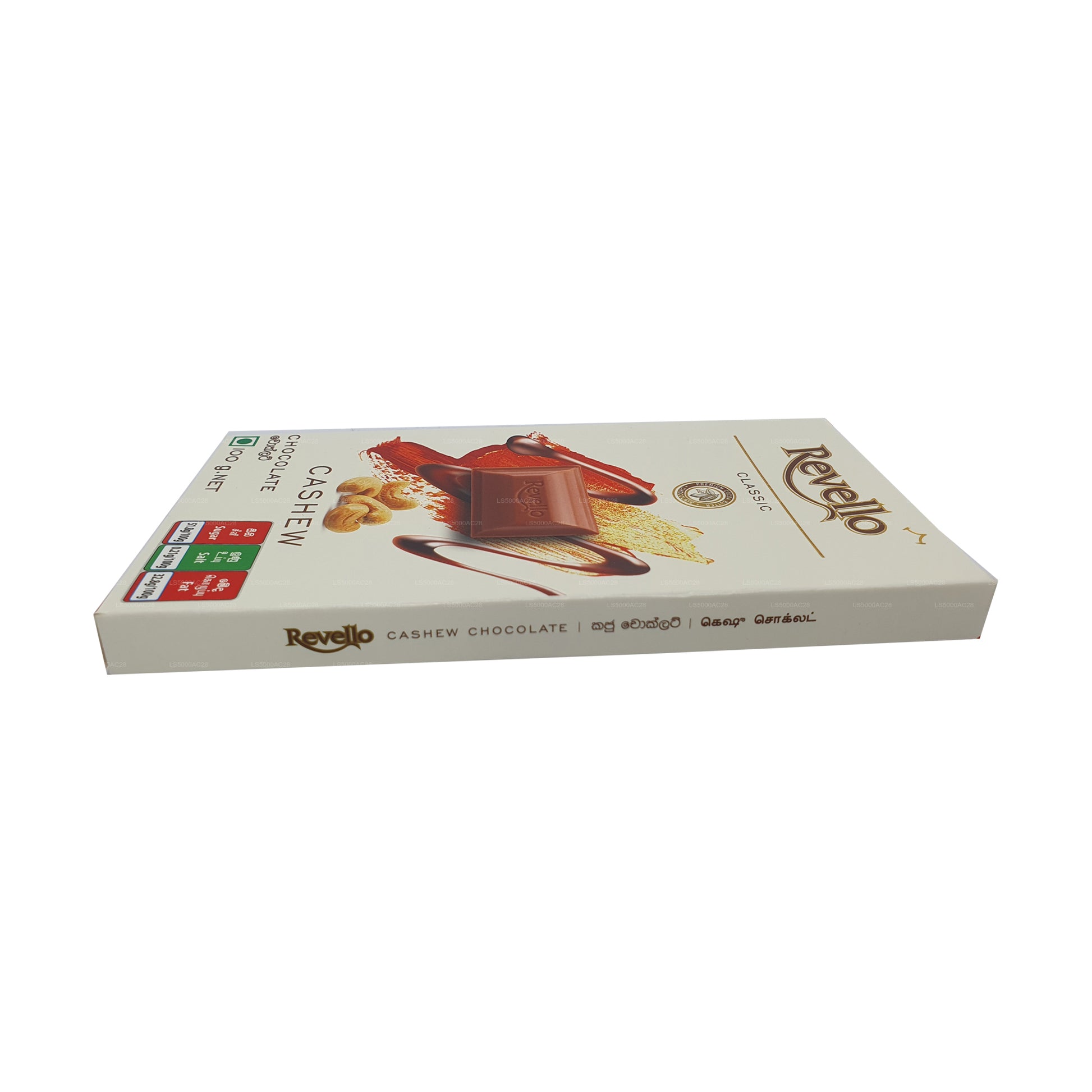 Revello Classic Cashew Chocolate offers a delightful blend of smooth milk chocolate and crunchy roasted cashews. Available in 50g, 100g, and 170g sizes, this treat combines rich, creamy chocolate with the satisfying crunch of whole, roasted cashews. Each bite delivers a luxurious combination of flavors and textures, making it the perfect indulgence for chocolate lovers. Whether enjoyed on its own or paired with beverages and desserts, Revello Cashew Chocolate promises a satisfying and premium experience with every piece.