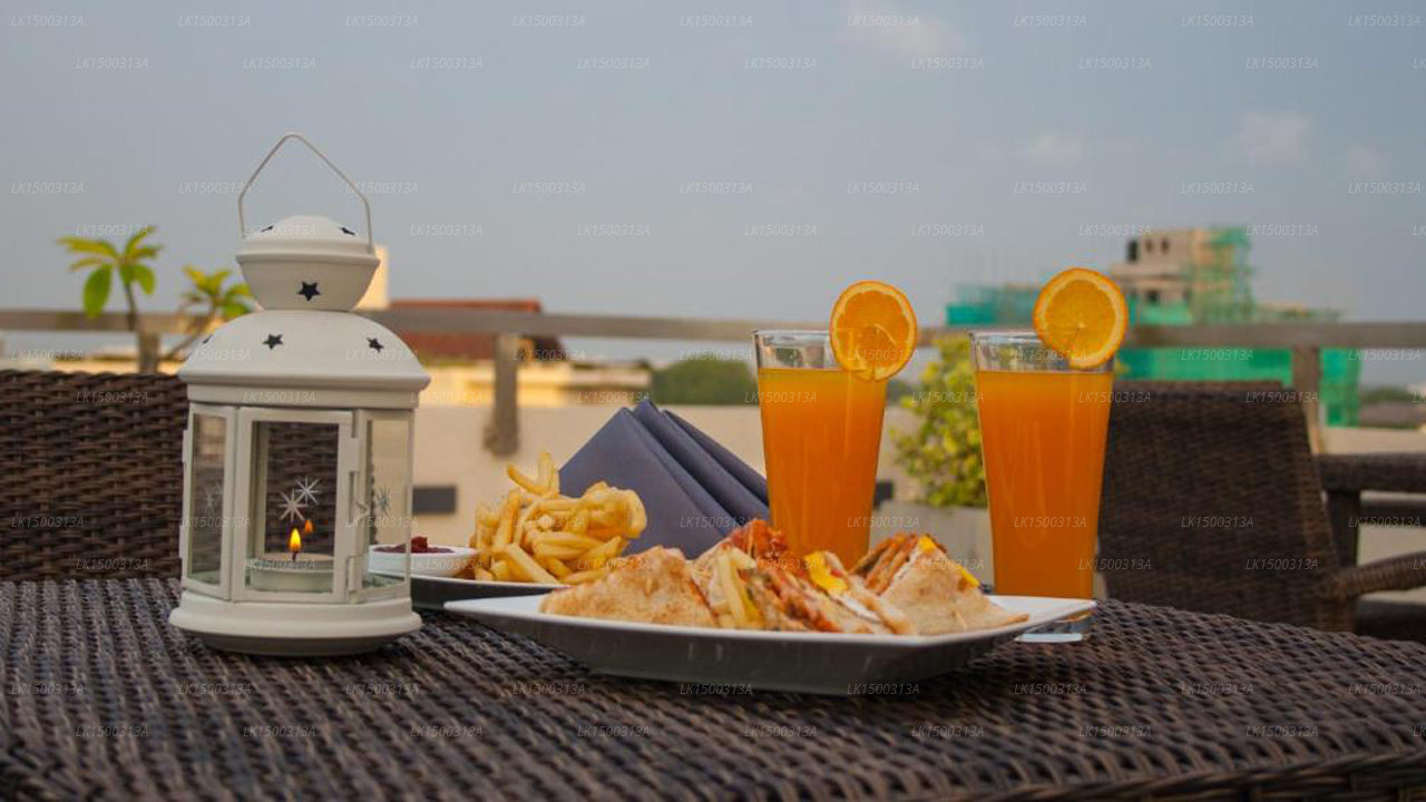 Accommodation:Rococo Residence offers tastefully appointed single-bedroom suites, providing top-notch serviced apartment accommodation in Colombo. The suites are designed to let in ample natural light, creating a spacious and airy atmosphere. Each suite features a balcony, a seating and dining area, and a fully equipped kitchen with a microwave and toaster. The private bathrooms come with slippers and free toiletries, and towels are provided for guests' convenience. The rooftop offers panoramic views of the cityscape, and guests can unwind in the outdoor pool. The apartment also includes free Wi-Fi, ensuring connectivity for guests throughout their stay.