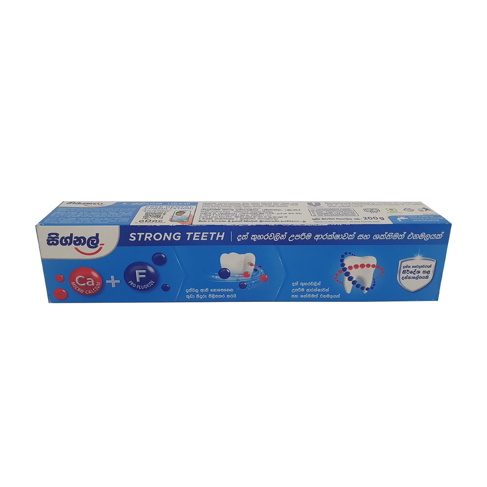 सिग्नल स्ट्रॉन्ग टीथ टूथपेस्ट (120g, 200g) एक्टिव फ्लोराइड की ताकत से दांतों को मजबूत बनाने और सड़न से बचाने के लिए बनाया गया है। यह टूथपेस्ट कैविटी से सुरक्षा देते हुए इनेमल की मरम्मत और रेजिस्टेंस को बढ़ावा देने में मदद करता है। यह प्लाक और टार्टर के जमाव को कम करके, मसूड़ों की सेहत को बेहतर बनाकर और सांसों की ताज़गी सुनिश्चित करके मुंह की पूरी सेहत में भी मदद करता है। बड़ों और बच्चों दोनों के लिए सही, सिग्नल स्ट्रॉन्ग टीथ का स्वाद हल्का होता है और यह परिवार के इस्तेमाल के लिए बहुत अच्छा है, यह मुंह की साफ़-सफ़ाई के लिए एक पूरा तरीका देता है।