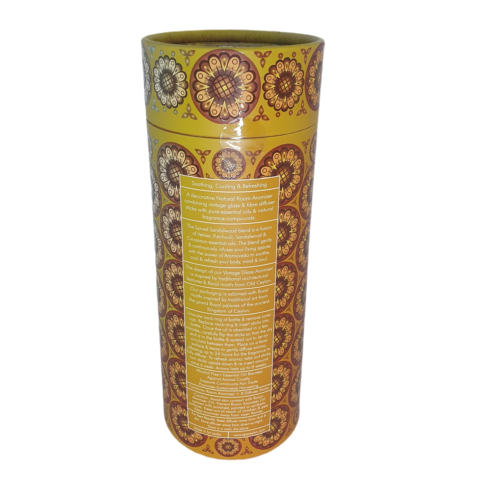 Our packaging is adorned with floral motifs inspired by traditional art from the grand Royal palaces of the ancient Kingdom of Ceylon.