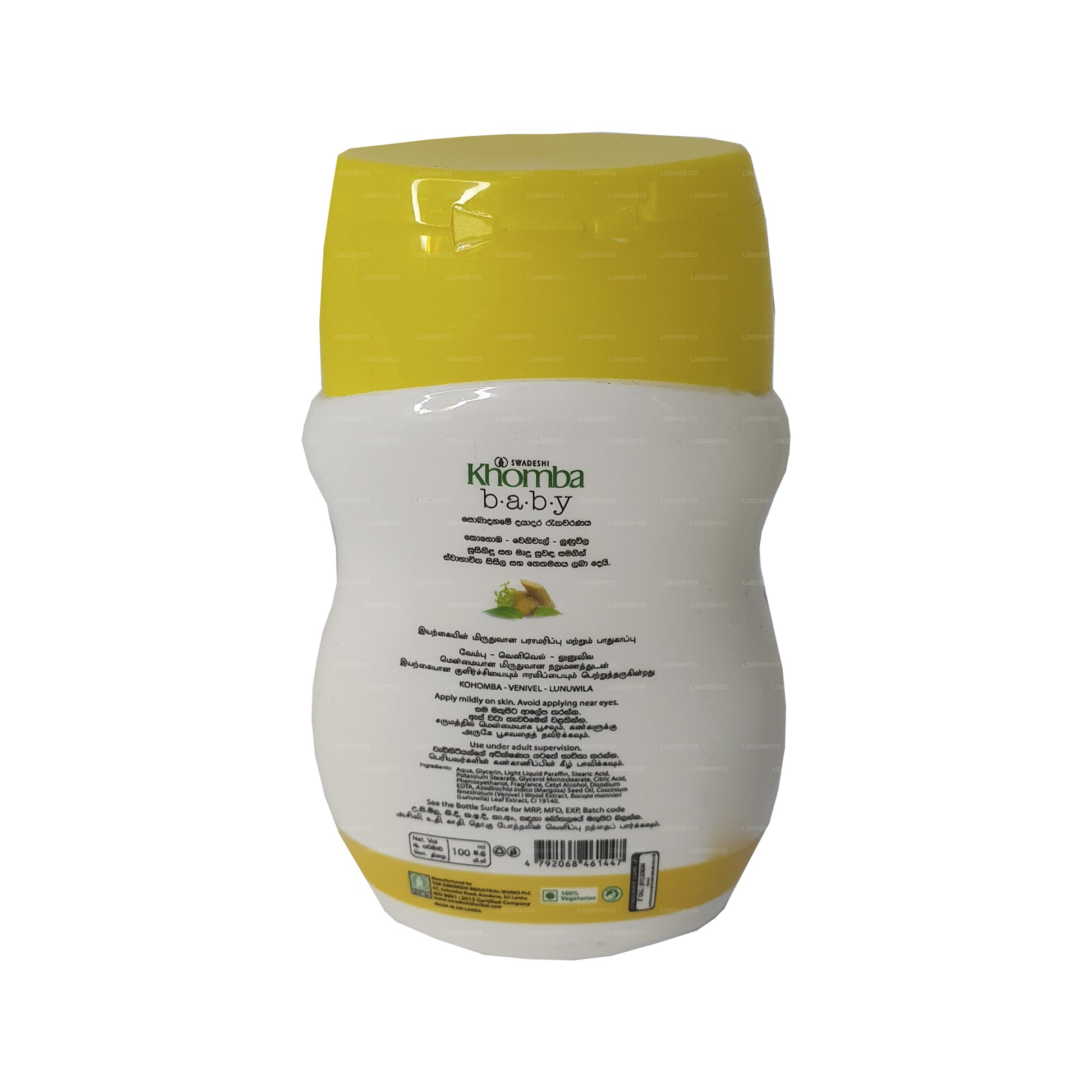Swadeshi Khomba Baby Cream Venivel is a gentle and cooling moisturizer specially formulated to keep your baby’s skin soft, healthy, and refreshed. Enriched with the natural goodness of kohomba (neem), it helps protect delicate skin, while venivel provides natural cleansing properties. The addition of lunuwila offers a soothing cooling effect, making it ideal for maintaining comfort in warm conditions.