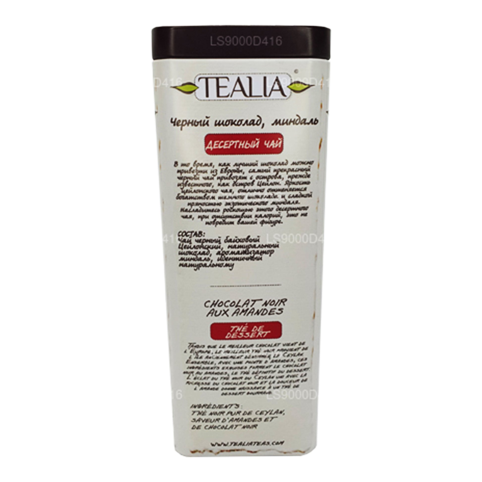 (SKU: LS9000D416) While the best chocolate may come from Europe, the finest black tea comes from the island formerly known as Ceylon. Together, with a hint of almond, these exquisite ingredients form Dark Chocolate Almond, an unrivalled dessert tea. The brightness of Ceylon black tea is perfectly complimented by the richness of dark chocolate and the sweet nuttiness of exotic almond. Savour the luxury of a zero calorie dessert.