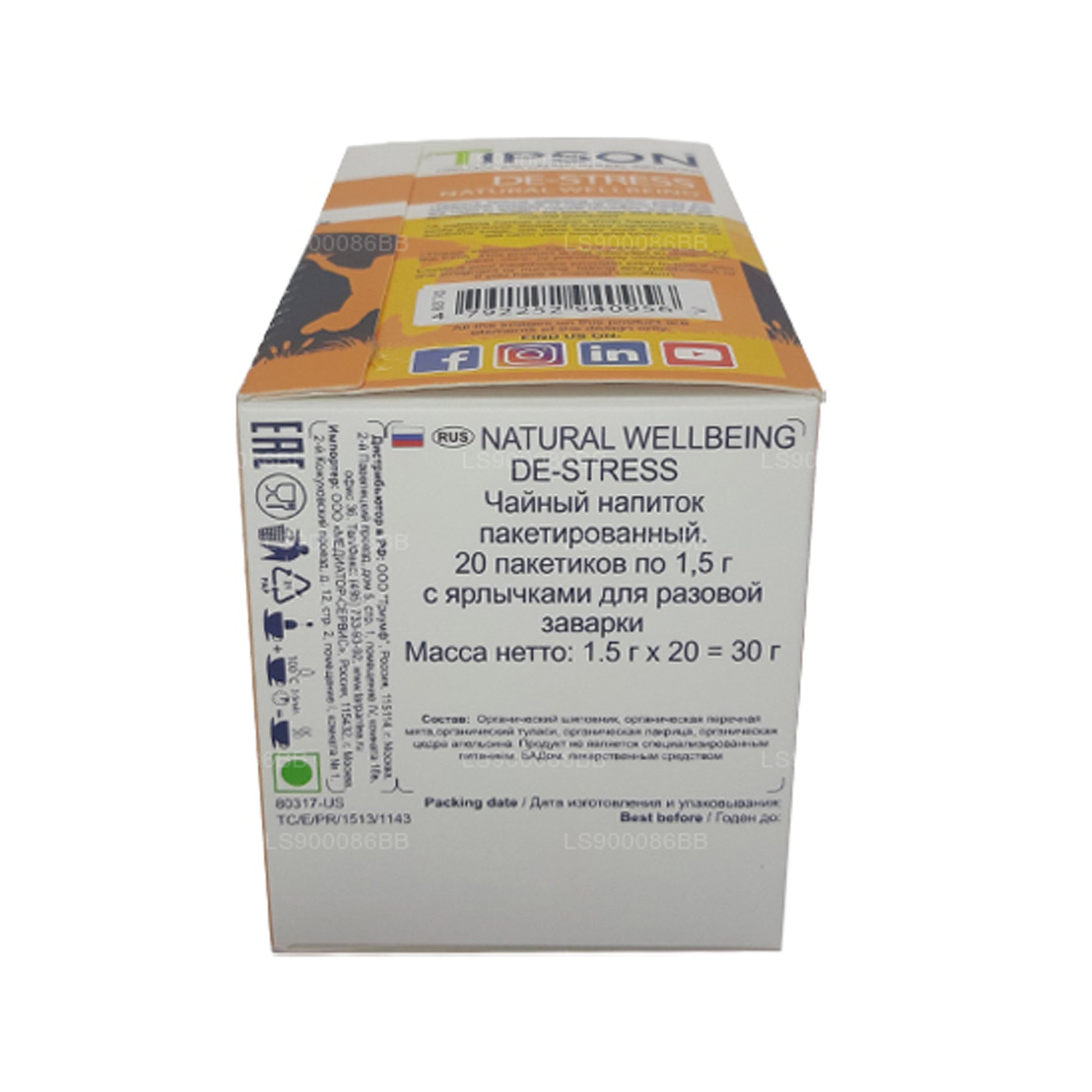 Tipson De-Stress Natural Wellbeing (30g) 20 Enveloped Tea Bags
