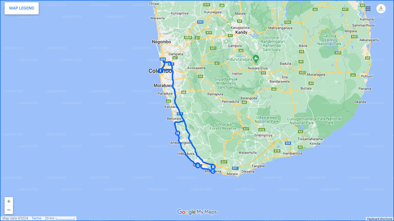 कोलंबो से हंडुंगोडा, गाले और कोसगोडा