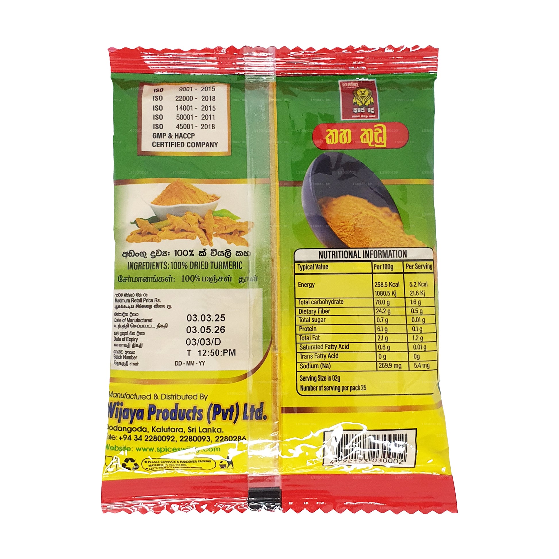 (SKU: LS5000C93C)Produced using high quality tubers of the plant Curcuma longa. Grinding is carried out in a mill, specially designed for the grinding of turmeric tubers, under strict hygienic conditions. The product is hygienically packed in laminated pouches to preserve its freshness for a long period.
