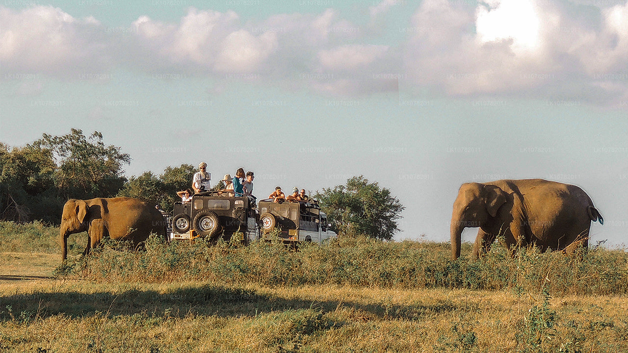 This three-hour safari takes you on a ride through the Minneriya National Park. Enjoy the sight of over 150 elephants congregating in one place during the famous Great Elephant Gathering, which happens in the dry season between May to October. In addition to elephants, get a chance to also see many mammals, birds, reptiles and amphibians in the scrublands, forests and other areas.