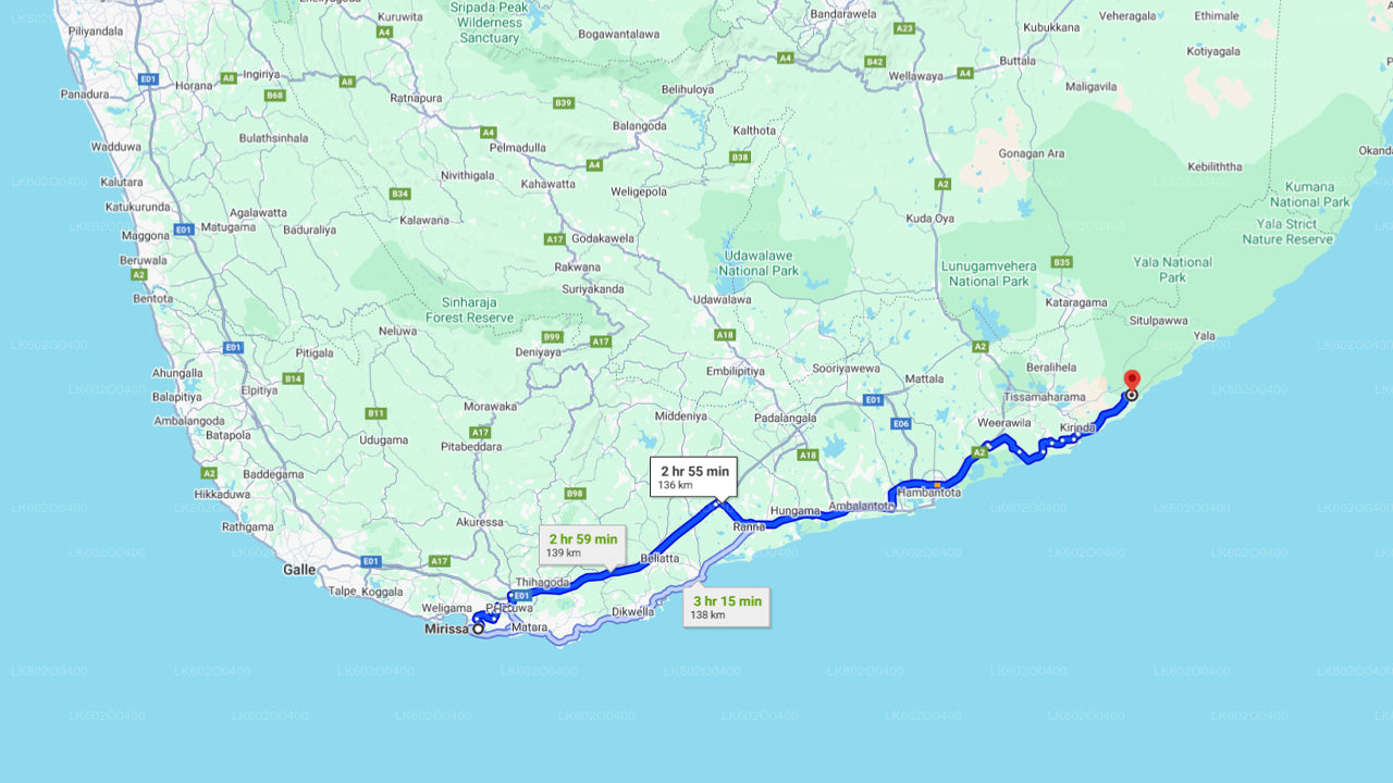 आपका दौरा मिरिस्सा से सुबह 10:30 बजे शुरू होगा। आपका चालक आपको होटल से ले जाएगा और याला तक पहुँचाएगा।
